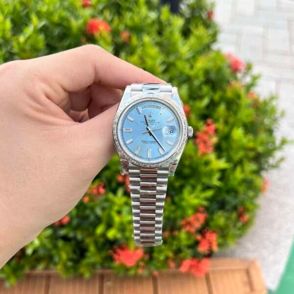 Rolex Replica Watch Day-Date Ice Blue Dial With Baguette Stones EW Factory 40mm
